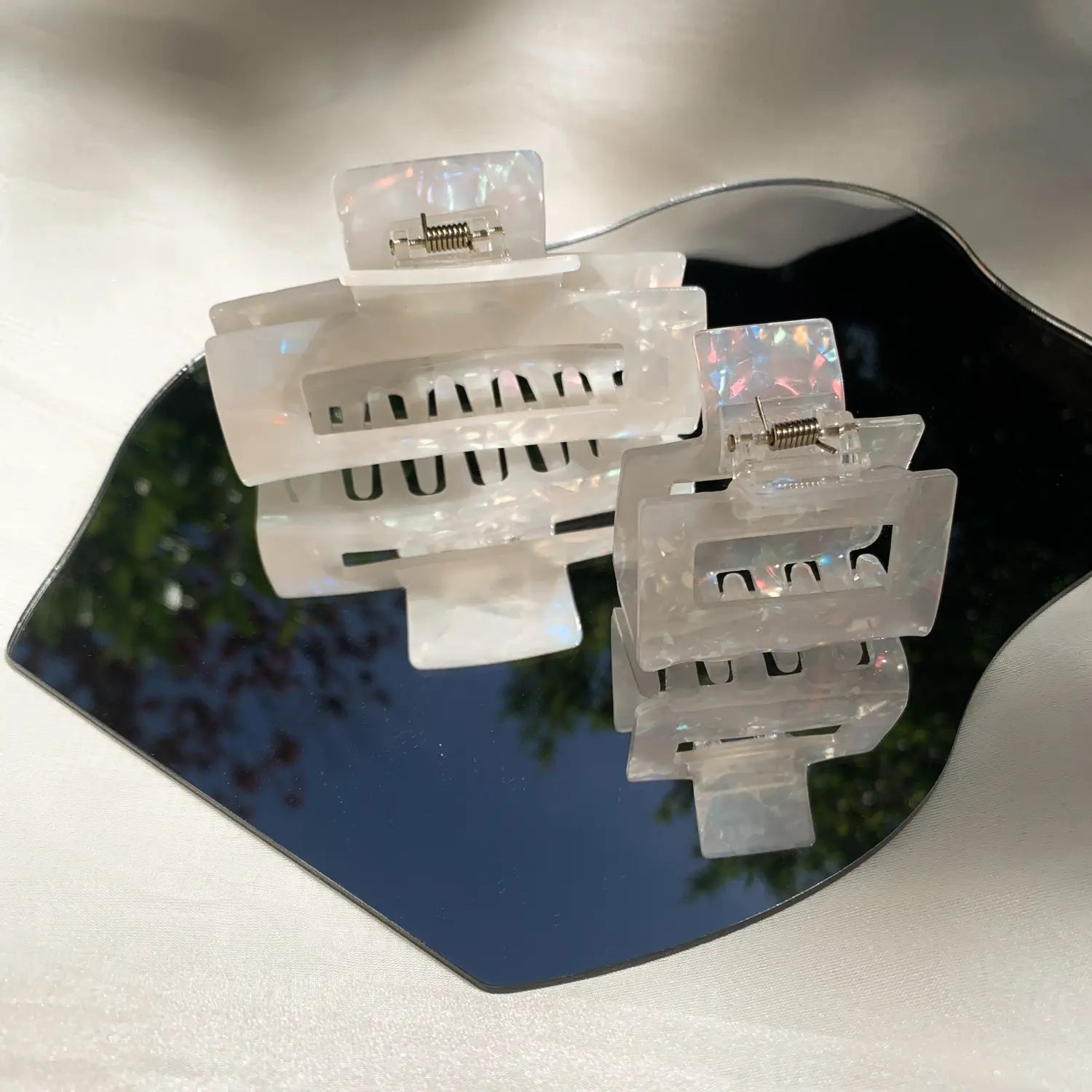 The Ella Hairclip enchants with its delicate, shimmering mother-of-pearl finish. Its compact size and strong hold make it ideal for both fine and thick hair. Whether for everyday wear or special occasions, the Ella Hairclip adds a gentle, elegant touch to your look.
