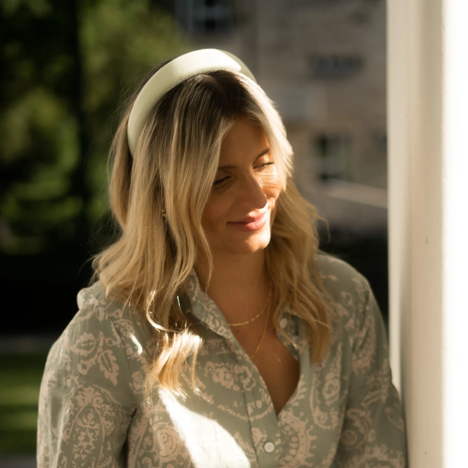 The Karla Hairband in a soft green shade brings subtle elegance to your everyday style. With its soft fabric and minimalist design, it’s a timeless accessory that suits any occasion. Wear it to add a fresh, stylish touch to your look, whether for work, leisure, or special events.