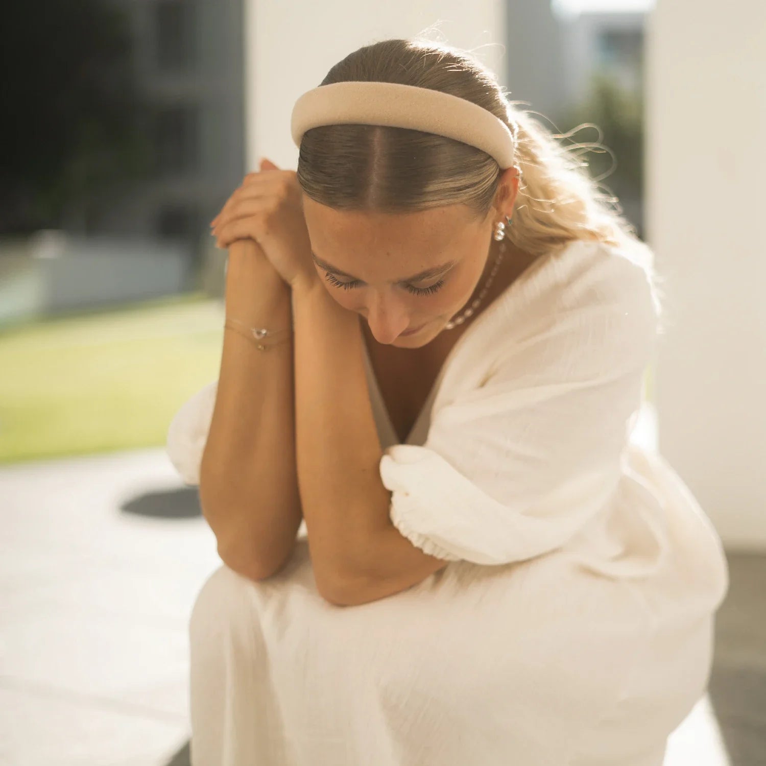 The Lelou Hairband in warm beige is a versatile accessory that combines elegance and comfort. It pairs easily with a variety of outfits, offering a subtle, stylish look. Perfect for both everyday wear and special occasions, the Lelou Hairband adds an elegant touch to your style.