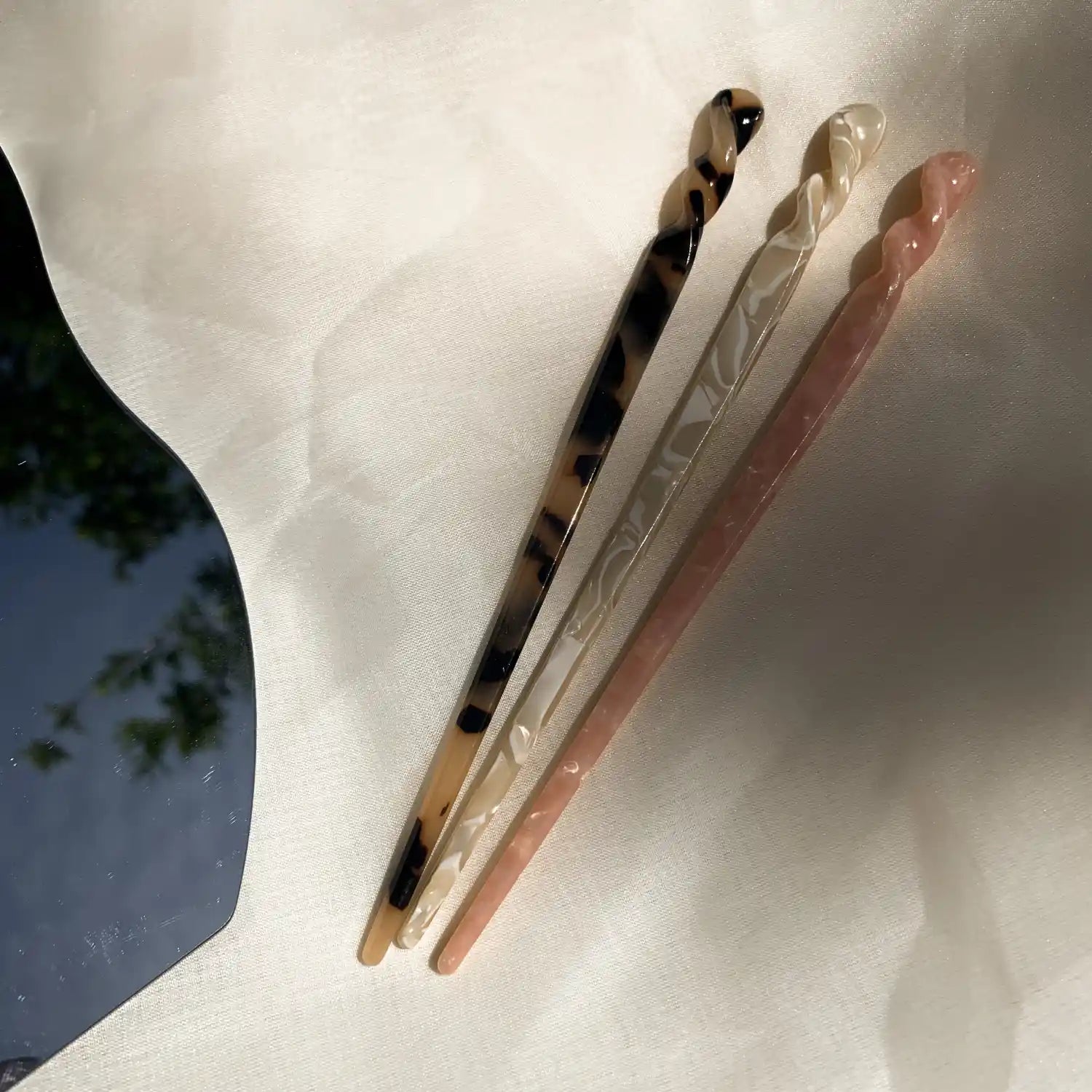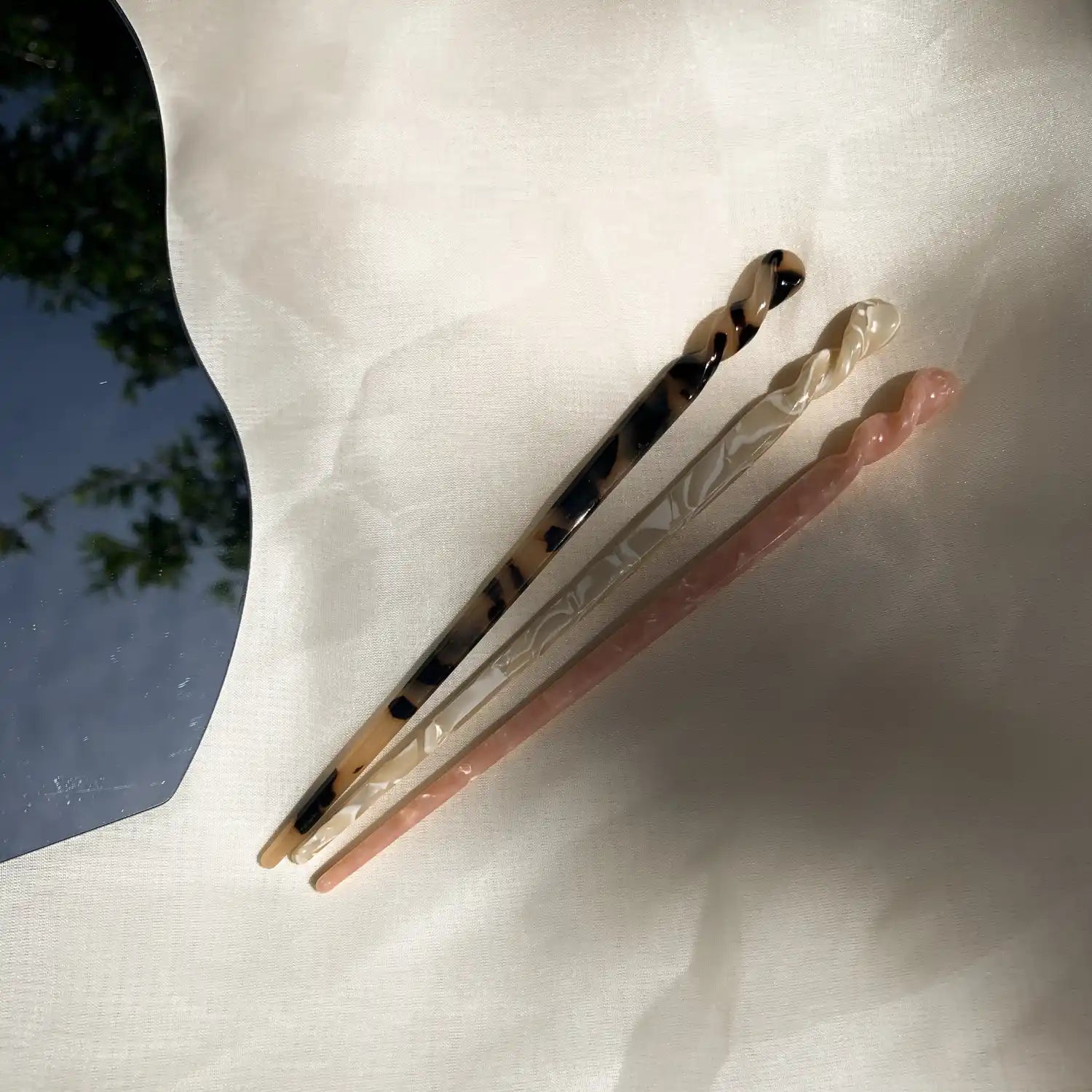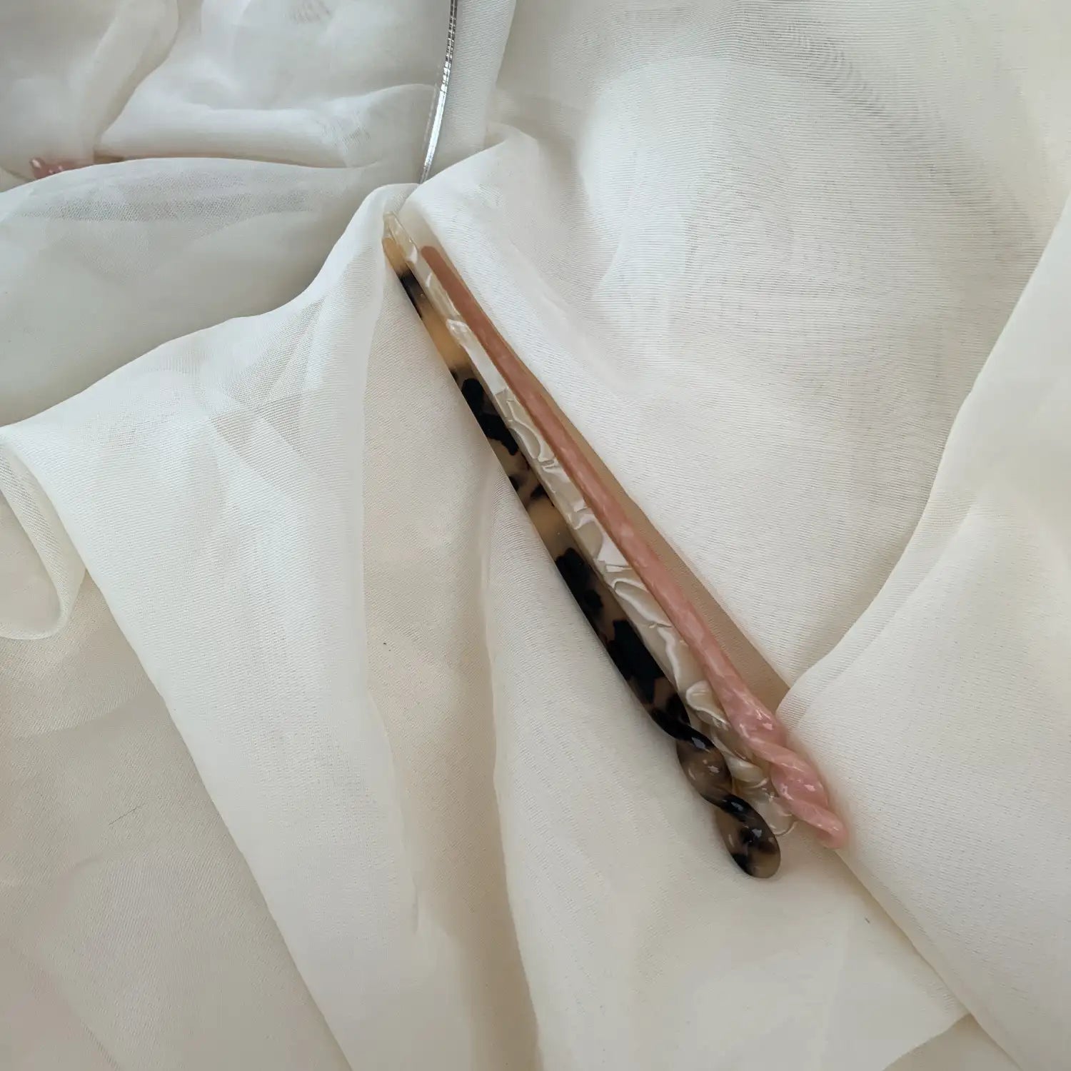 The Raja Hairpin is the perfect accessory for simple elegance. These sleek pins, available in designs like leopard print and marbled tones, add a subtle yet fashionable touch to any look. Ideal for updos or securing loose strands, the Raja Hairpin offers both style and a secure hold.